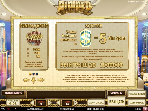 Как утверждается в справочном разделе, на длинном игровом отрезке видео-слот Pimped возвращает 96,51% общей суммы ставок клиентов.