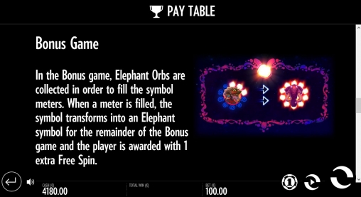 - Free Spins – От трех до шести скаттеров запускают семь, одиннадцать, пятнадцать или девятнадцать бесплатных вращений. Они проходят на деньги онлайн-казино по той же ставке. В течение бонусных спинов появляются сияющие сферы, которые заполняют шкалу слева от барабанов. Когда она будет занята целиком, эти символы станут слонами до конца розыгрышей. Также начисляется еще одни фри-спин. Продлеваются вращения двумя и более Scatter.