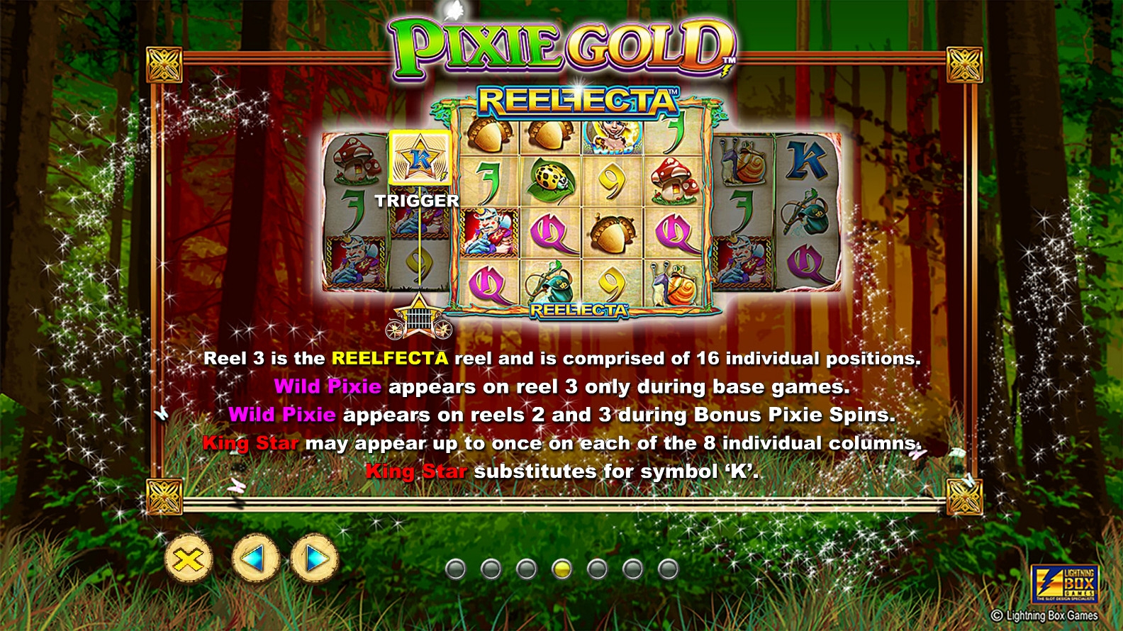 В Pixie Gold есть несколько уникальных бонусных функций, особые и специальные символы, риск-игра по шансам и другие опции.
