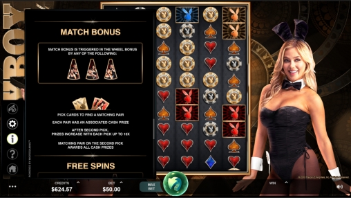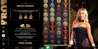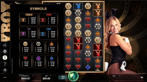 Большое игровое поле с шестьюдесятью символами располагается по центру экрана. По обе стороны барабанов постоянно находятся модели Playboy.