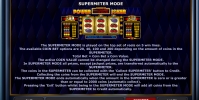 Supermeter Mode – Здесь задействованы пять линий. Ставить можно двадцать, сорок, сто или двести монет на спин. Менять их номинал в процессе нельзя. Выплаты начинаются со ста монет за минимальную комбинацию и могут достигать двух тысяч. Здесь же можно побороться за прогрессивный джекпот. Игрок может не участвовать в режиме Supermeter и сразу перевести на основной счет выплаты, полученные в Base Mode.