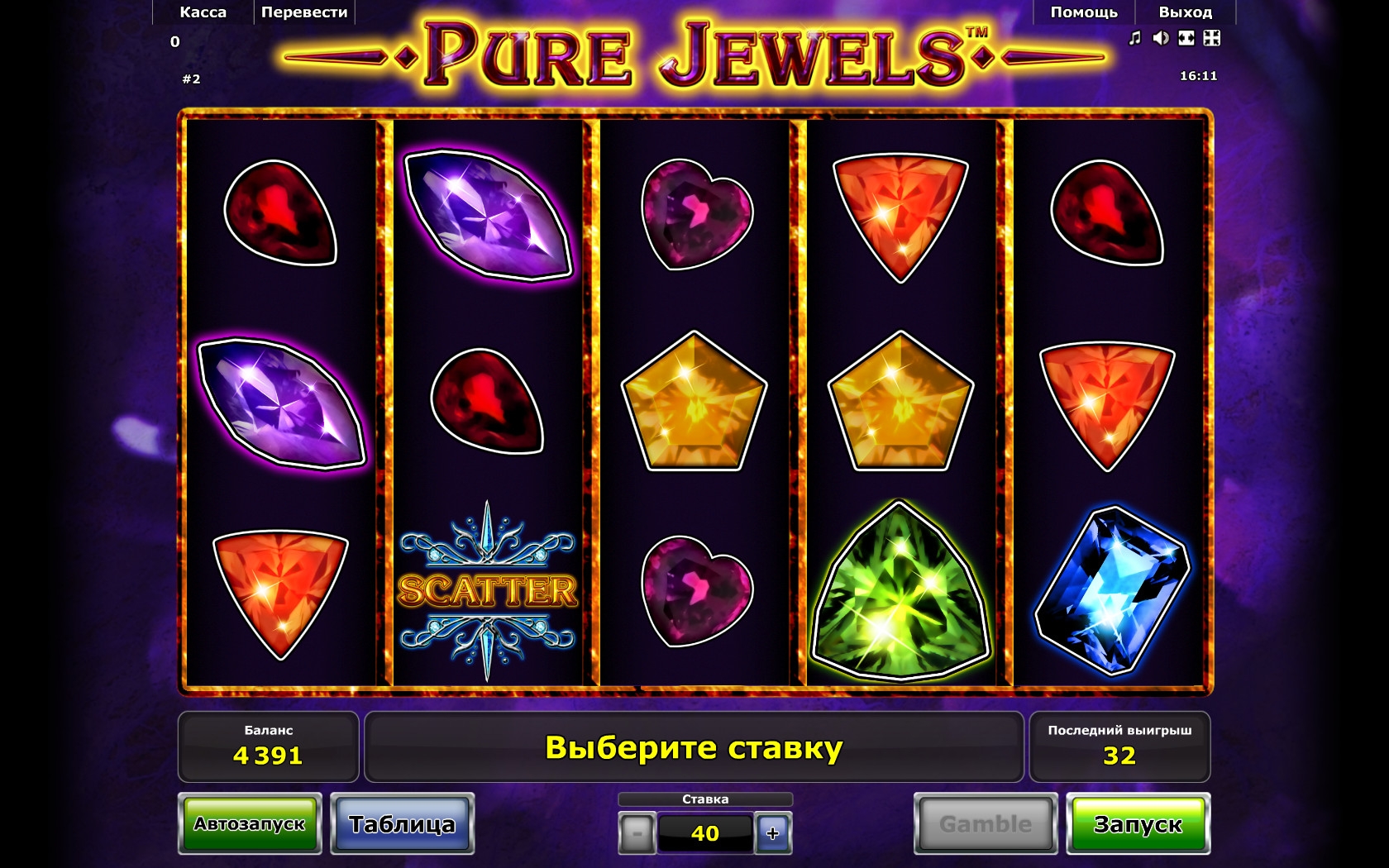 Вам не нужно скачивать видео-слот Pure Jewels, ведь он открывается непосредственно на сайте заведения.