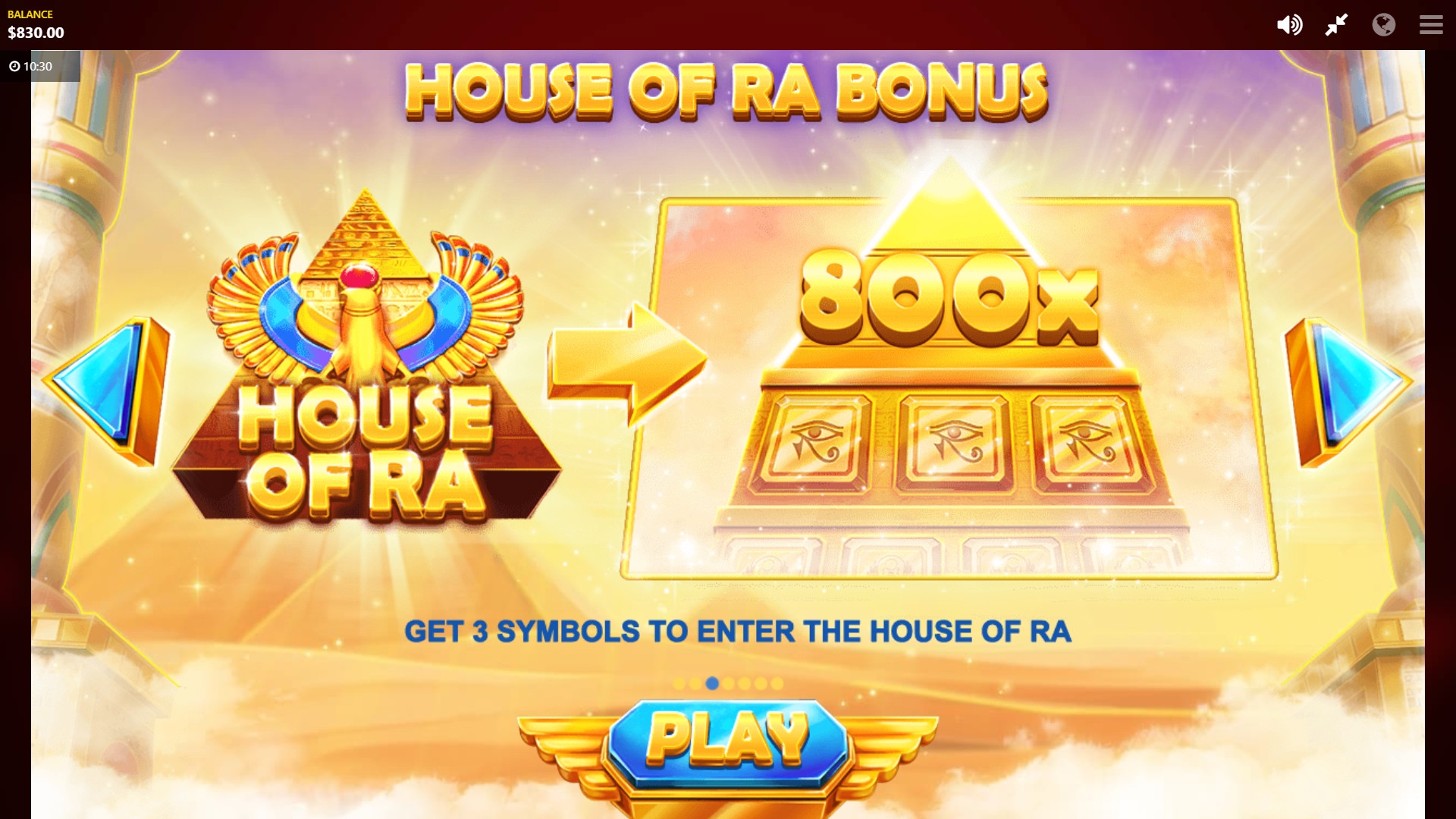 - House of Ra Bonus (пирамида) – при подобных элемента в любых позициях дают старт призовой игре.