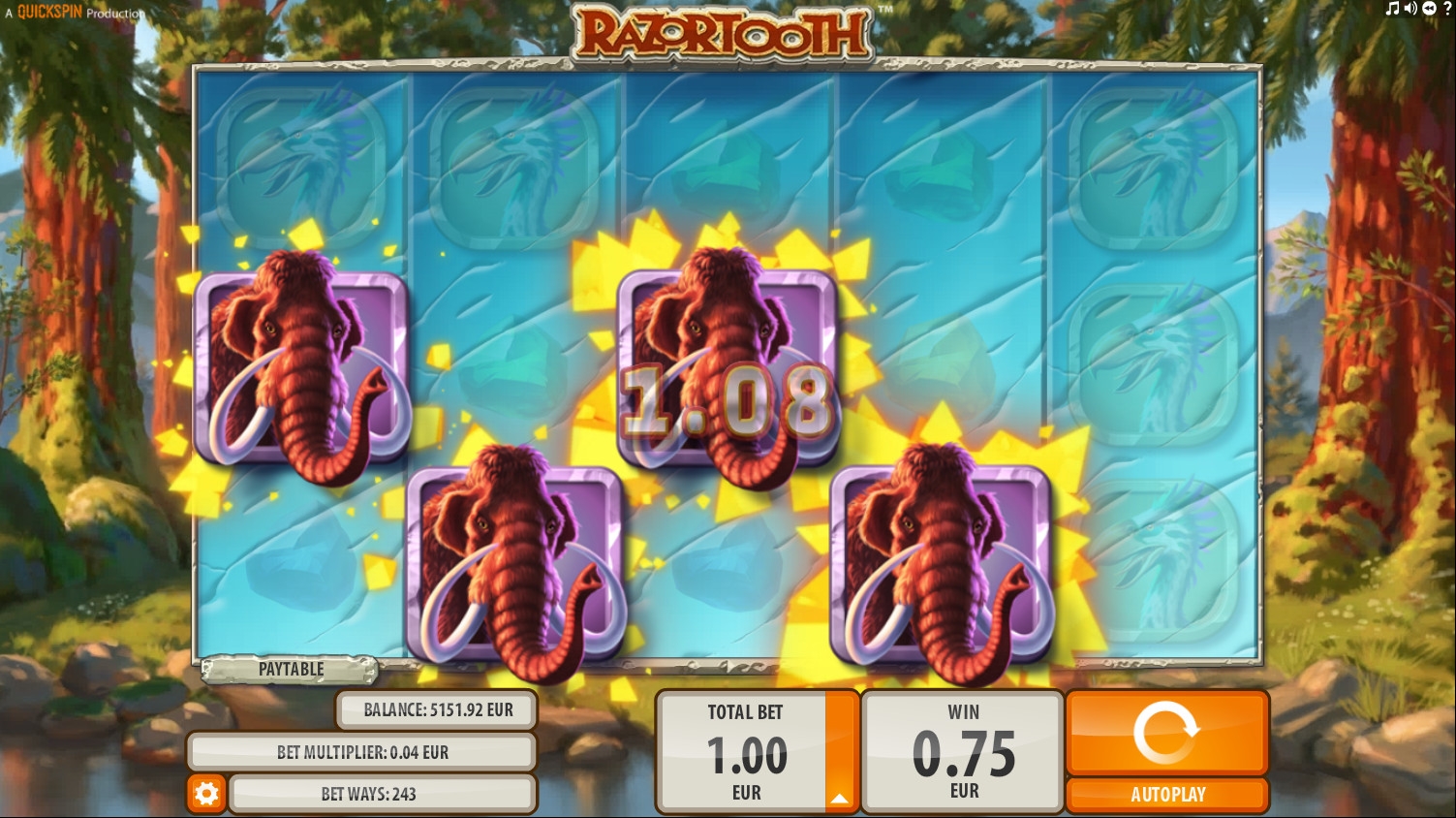 Запустив видео-слот, вы увидите саблезубого тигра, огромного мамонта, ужасного носорога, жуткого медведя и некую птицу, напоминающую страуса. Кроме того, на экране появляются четыре разноцветных камня.