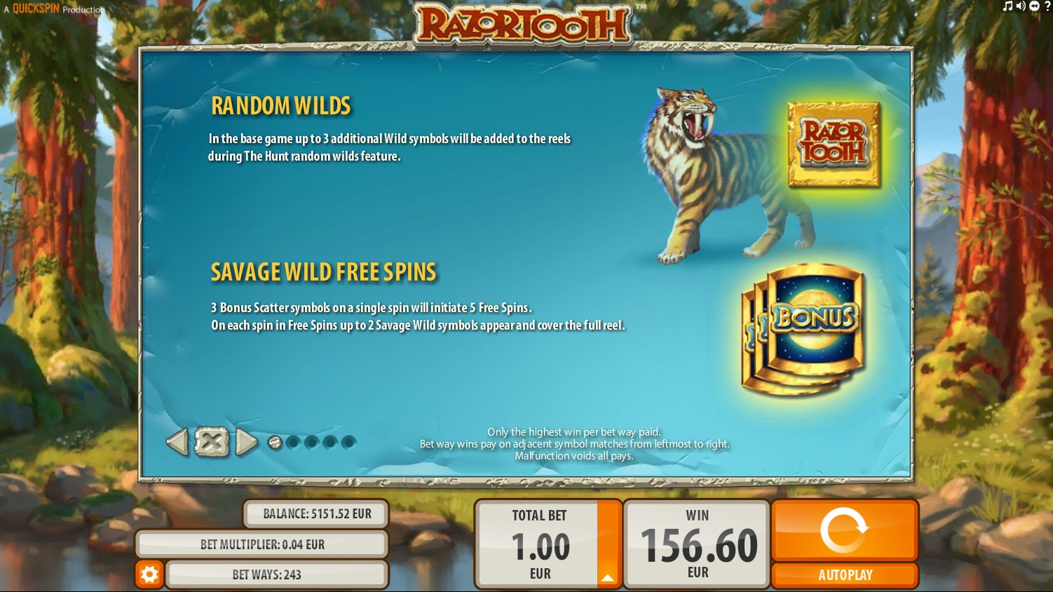 Вы не будете скачивать игровой автомат Razortooth, ведь он открывается прямо в браузере.