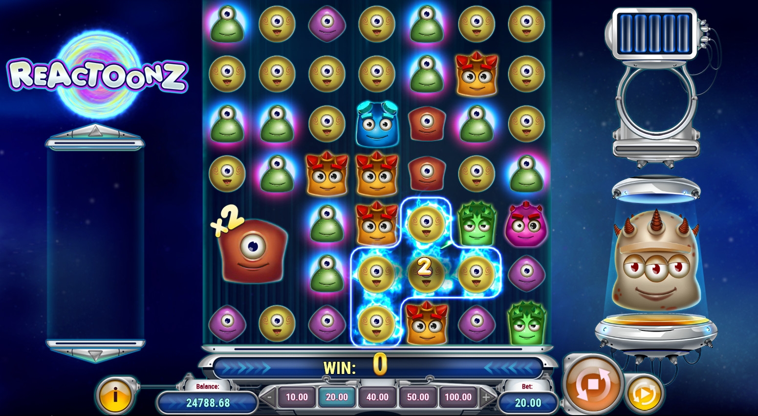 В Reactoonz не предусмотрен розыгрыш накопительных джекпотов.