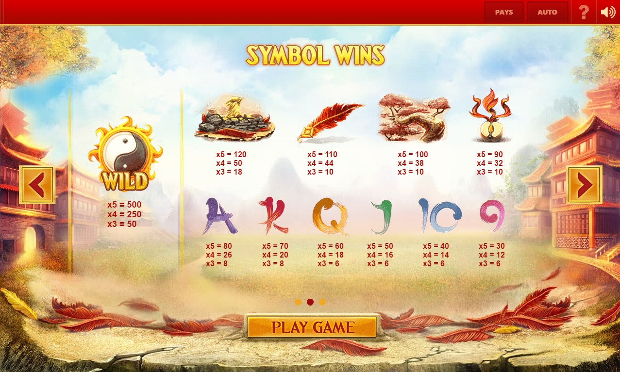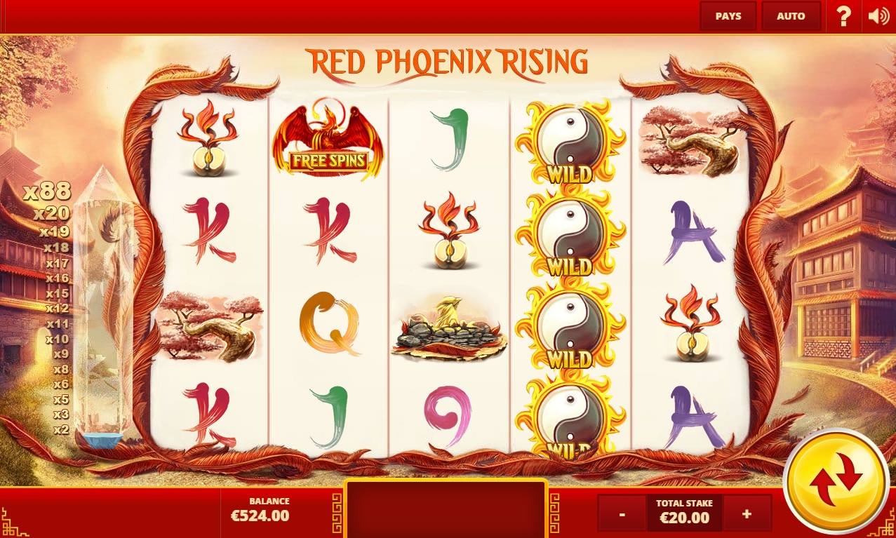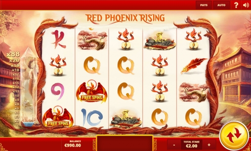 Red Phoenix Rising представляет собой игровой автомат с пятью барабанами и двадцатью позициями для картинок на главном экране. Вы сможете играть только по сорока задействованным линиям, на которые нужно делать равные ставки.
