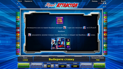 Набор доступных в Reel Attraction функций состоит из базовых картинок, специальных элементов, опции Reel Slide, бесплатных спинов с расширенными возможностями и раунда на удвоение выплаты. Все они обсуждаются ниже.