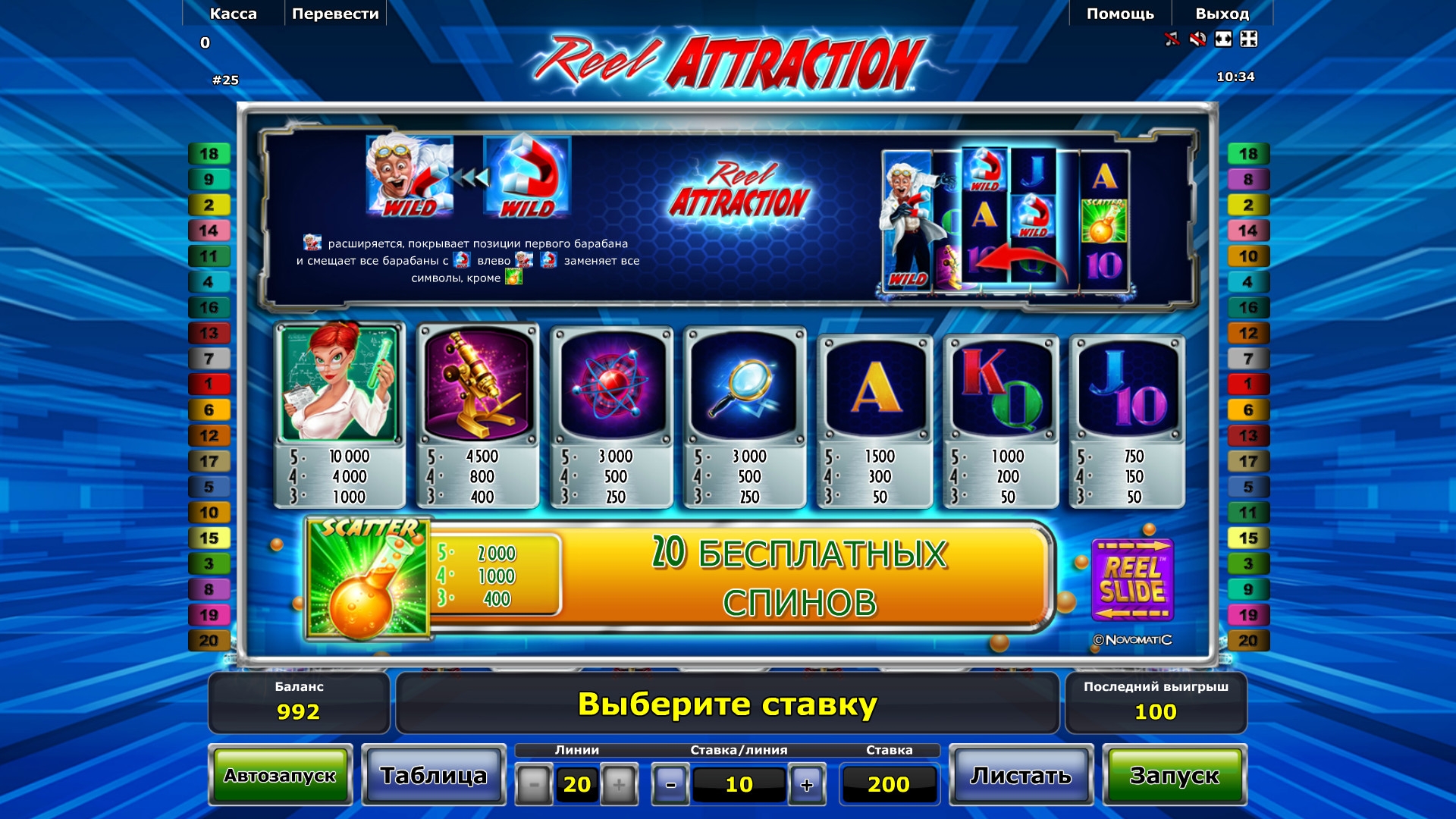Специалисты из компании Novomatic выпустили онлайновый видео-слот об игривом профессоре и его сексапильной ассистентке. Ученый-физик занимался вопросами притяжения и сделал очень важное открытие, благодаря которому он научился менять местами барабаны на экране. Так что у вас появится очень важное преимущество, подробно рассматриваемое в обзоре от Casinoz.