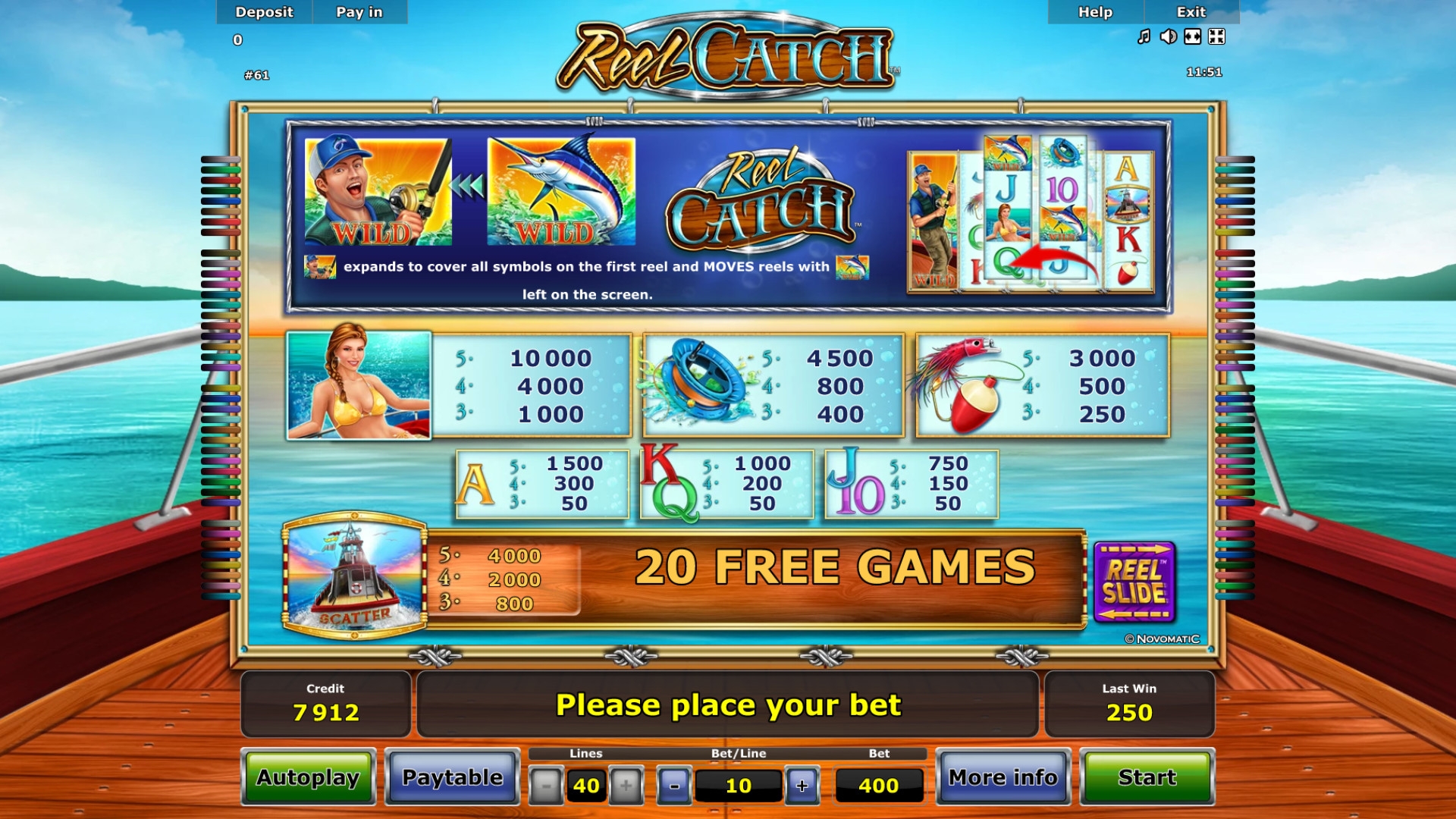 В Reel Catch прогрессивный джекпот Novomatic не разыгрывается.