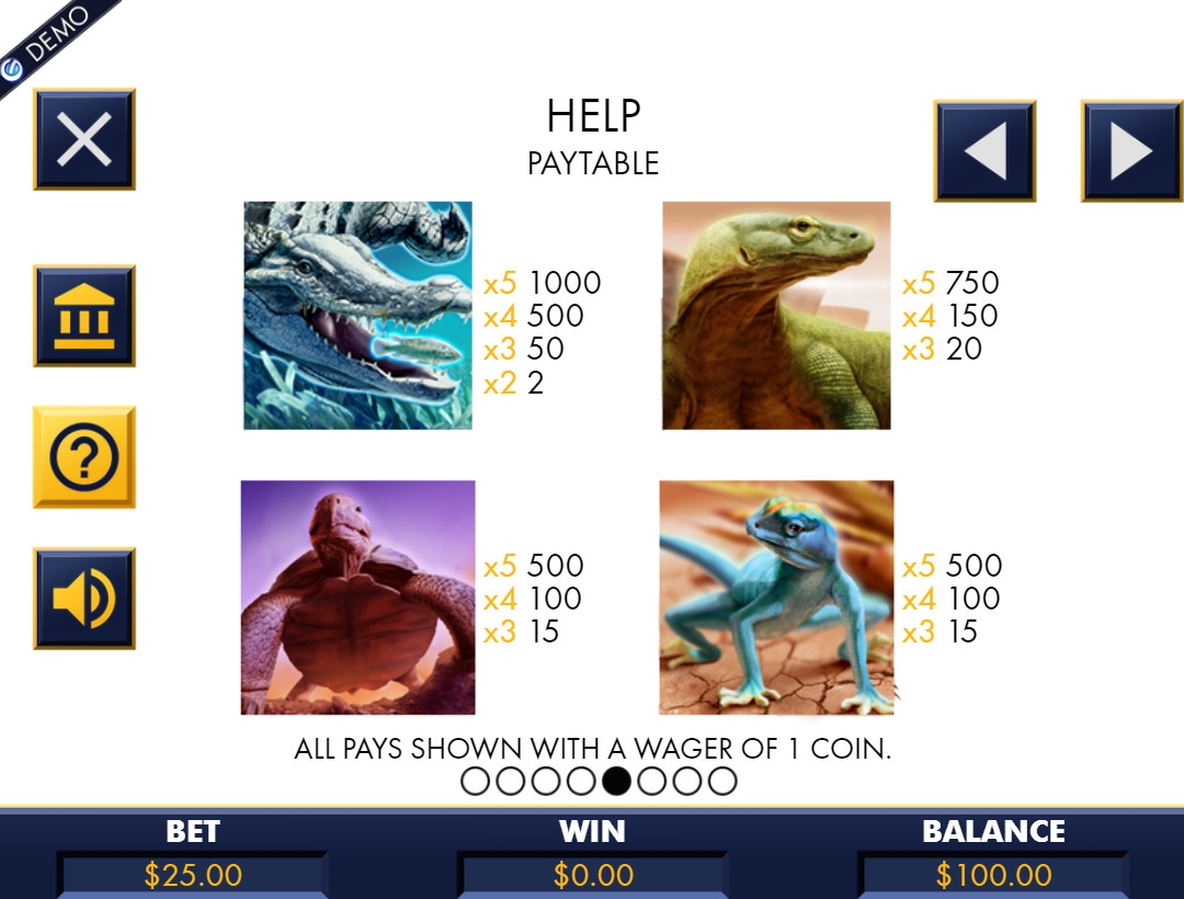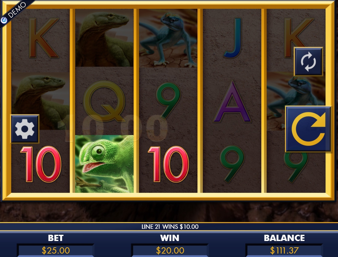 На барабанах видео-слота изображены различные представители класса пресмыкающихся, включая крокодилов, варанов, саламандр и черепах. Также используются шесть номиналов игральных карт.