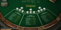 На разметке стола есть таблицы с указанием коэффициентов выплат по основной и побочной ставкам. Слева можно увидеть табличку с диапазоном ставок.
