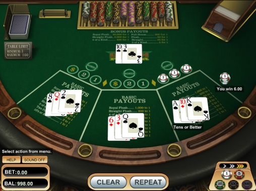 Ваша цель – собрать оплачиваемую комбинацию, используя три карты, полученных с раздачи и две, выложенных перед дилером. При этом в процессе игры вы решаете, стоит ли оставить все деньги, изначально поставленные на кон, или же их убрать их часть. Обмены карт и прочие подобные манипуляции правилами данного покера не предусмотрены.