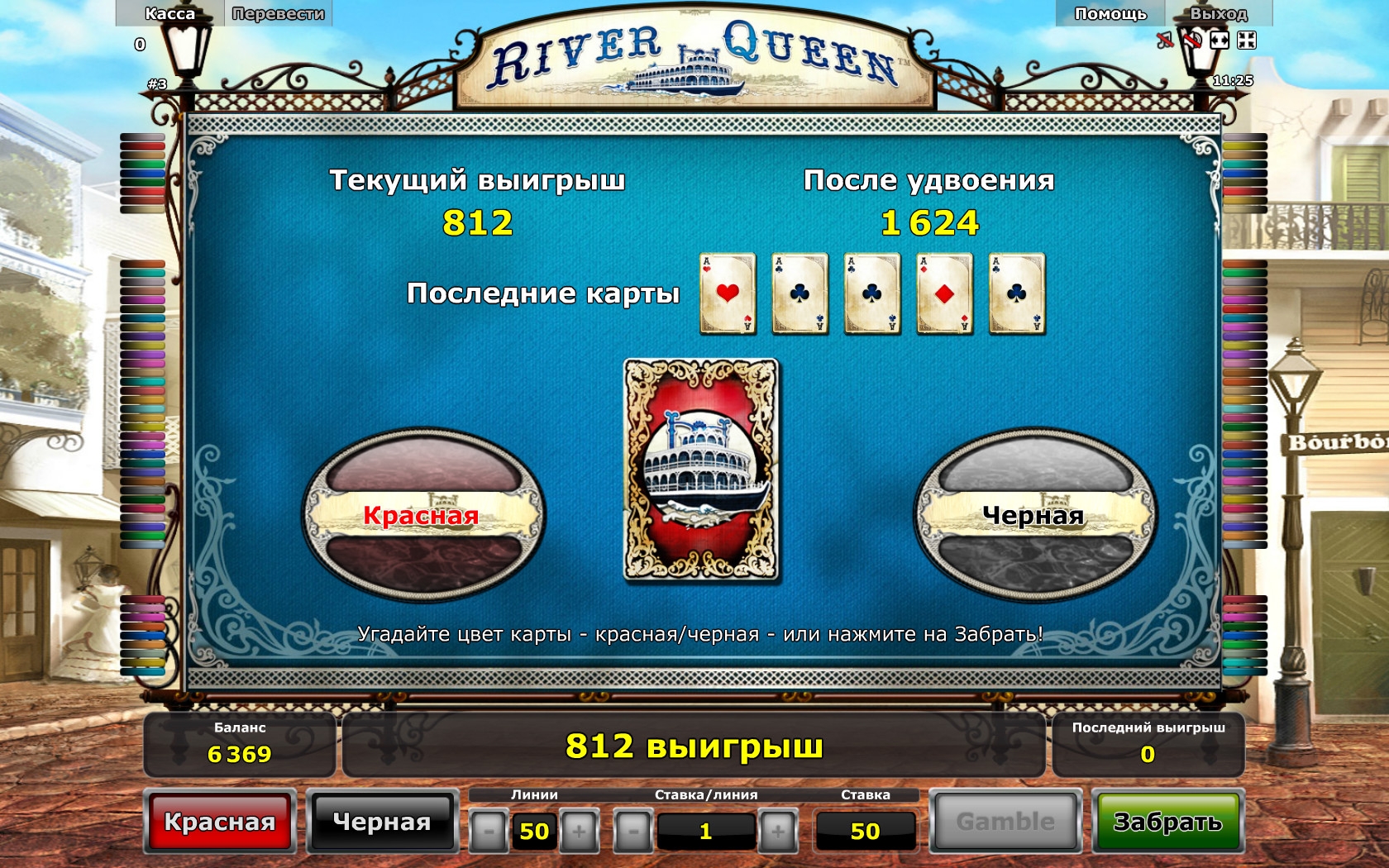 Он запускается на отдельном экране и выдержан в традиционном виде. Пользователю необходимо угадывать цвет карты, лежащей рубашкой вверх. Если ответ правильный, сумма удваивается. При ошибке деньги уходят в кассу. Действовать можно несколько раз подряд, но есть максимальный лимит, зависящий от ставки.