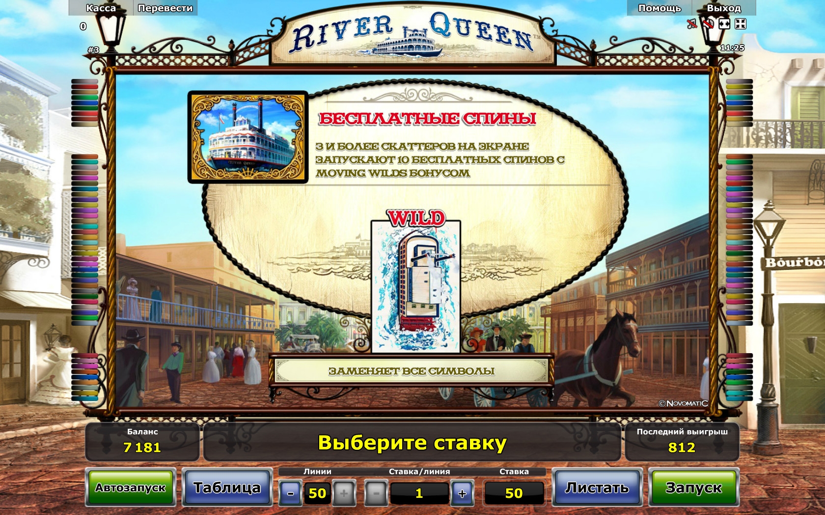 Как обычно у Novomatic, River Queen не нужно скачивать. Вы можете открыть игру непосредственно в интернет-браузере.