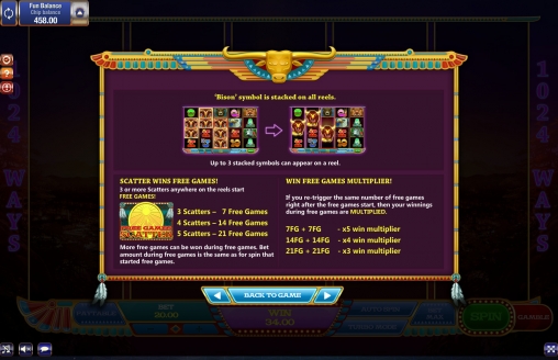 Базовые символы приносят выигрыши, формируя оплачиваемые комбинации. Таковыми являются несколько одинаковых картинок, выстроившихся на соседних колонках, включая первую. В одном спине может быть несколько цепочек. Всего предусмотрены 1024 способа образования оплачиваемых последовательностей.