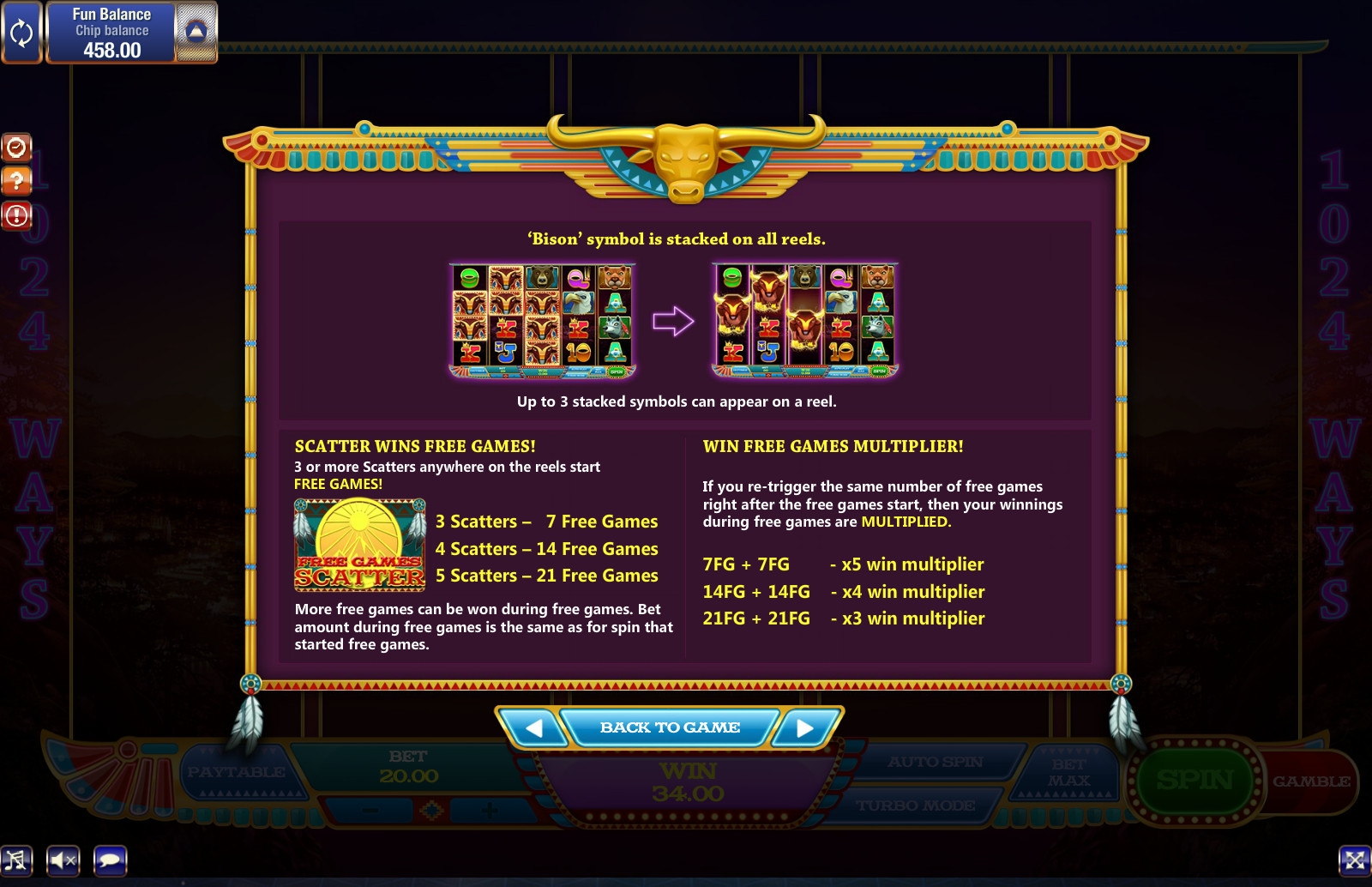 Специальными элементами являются Wild (индейский тотем) и Scatter (золотой медальон). О них вкратце рассказывается далее: