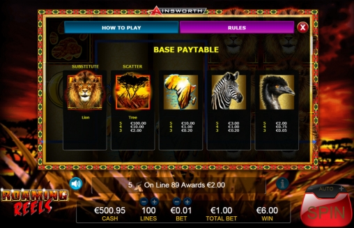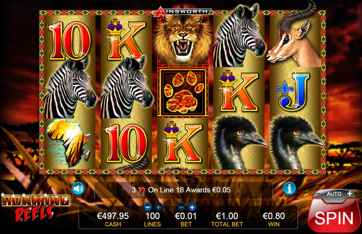 Правилами разрешается задействовать от одной до ста полос, сделав по ним равные ставки. На каждую линию принимается 0.01 – 0.75 евро. Таким образом, можно играть в Roaming Reels даже по одному центу на спин, а максимальная ставка достигает семидесяти пяти евро.