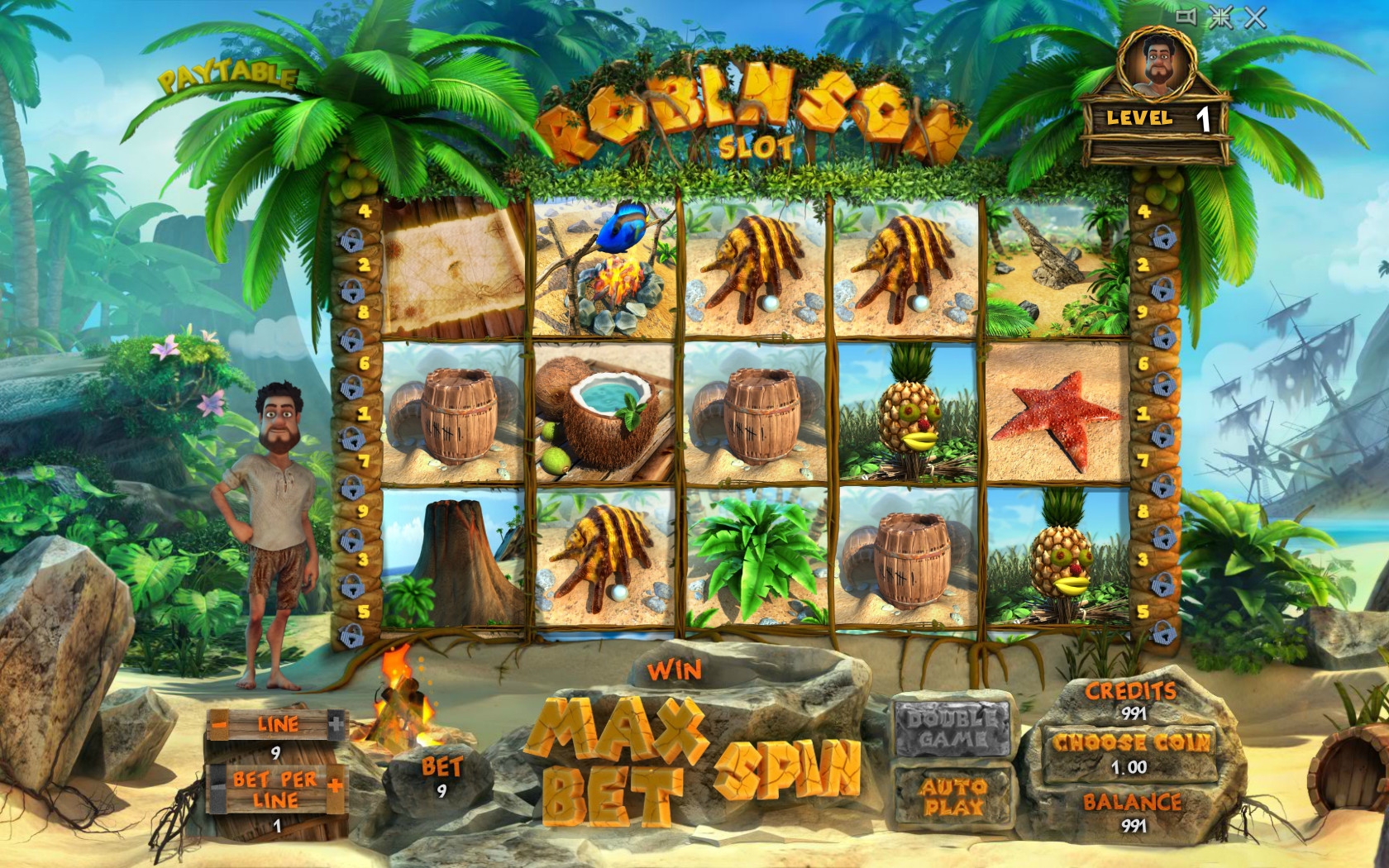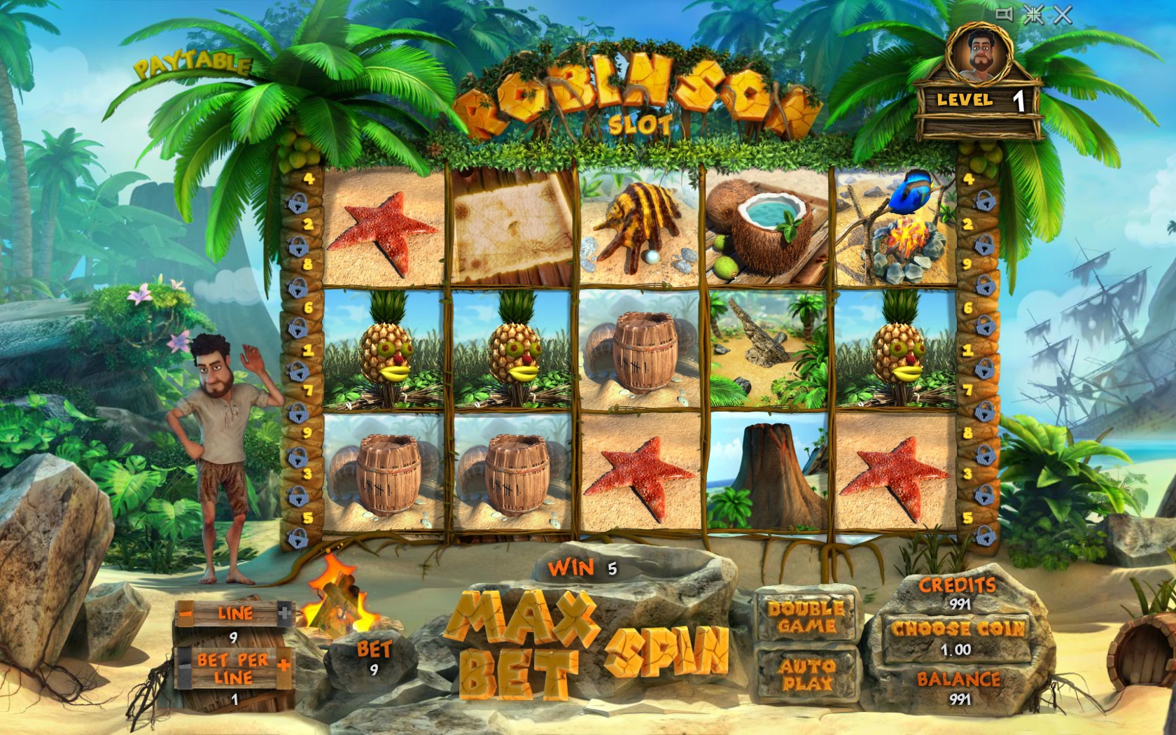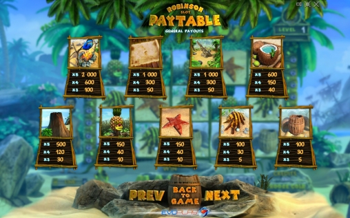 Отличная игра, не смотря на то что сейчас на улице холодно и мерзко, она меня окунула в эту теплую душевную тропическую атмосферу солнца и тепла. Робинзон - имеет шикарную 3д графику, я сначало даже не поверил своим глазам, отличным зажигательный саундтрек, просто и понятный интерфейс. Меня приятно удивила градация ставок она начинаеться всего с 0,01 евро, так что даже если у вас с деньгами не очень весело провести время и даже снять большой куш вы точно сможете.
