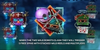- Wild – Он представлен в двух разновидностях, имеющих вид особых роботов, выпадающих лишь на первом и пятом барабанах. Они предназначены для того, чтобы заменять прочие картинки. Если такой персонаж оказывается в средней ячейке первой или пятой колонки, он заполняет весь столбец. Также они могут начать бонус Robo Smash.