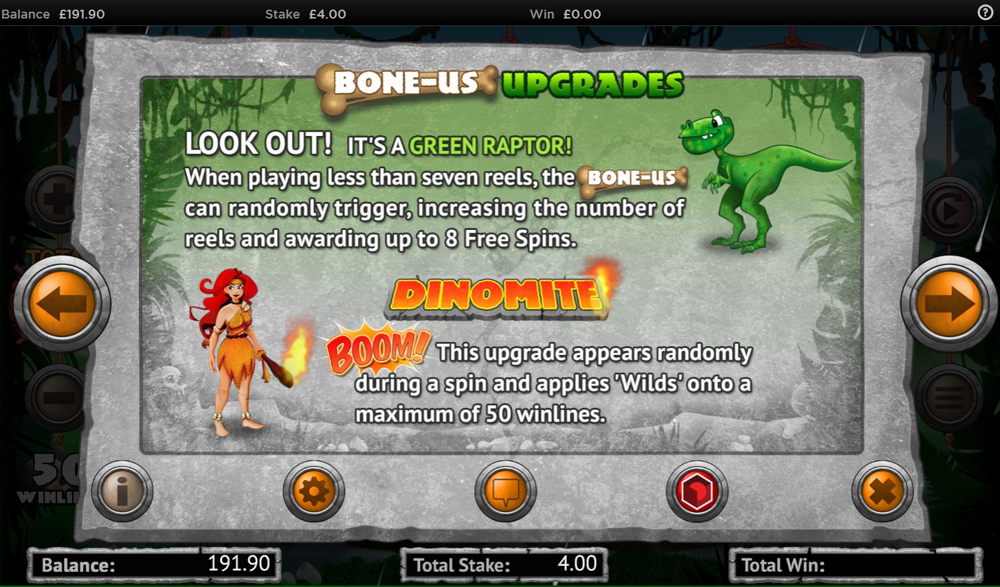 - Dinomite – На экране появляется героиня видео-слота, которая взорвет до семи барабанов. Вместо них появятся другие символы с многочисленными джокерами, изображенными вертикальными цепочками.