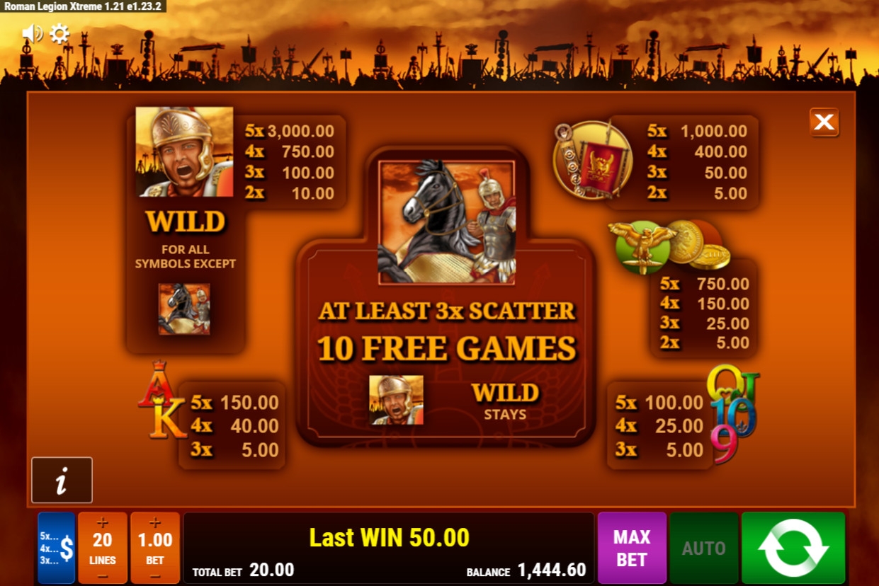 Открывайте Roman Legion Xtreme бесплатно на портале Casinoz. Не забудьте посмотреть демонстрационное видео, которое поможет вам разобраться в тонкостях правил.