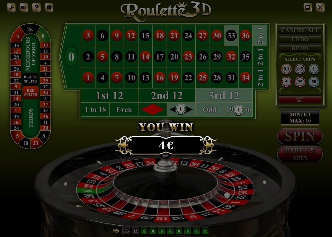 Очень красивая рулетка, 3D это новый виток в развитии интернет геймблинга. Играть было весело и интересно. К сожалению разочаровало отсутствие каких-либо бонусов в этой игре.