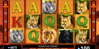 Лев, тигр, леопард, пантера и пума – вот главные персонажи игрового автомата «Королевские кошки». Кроме них, в роли базовых картинок выступают номиналы карт от дамы до туза.