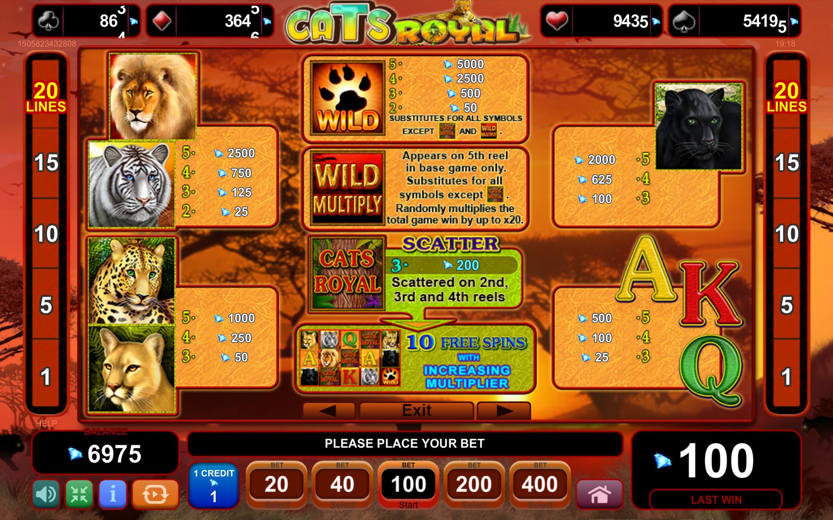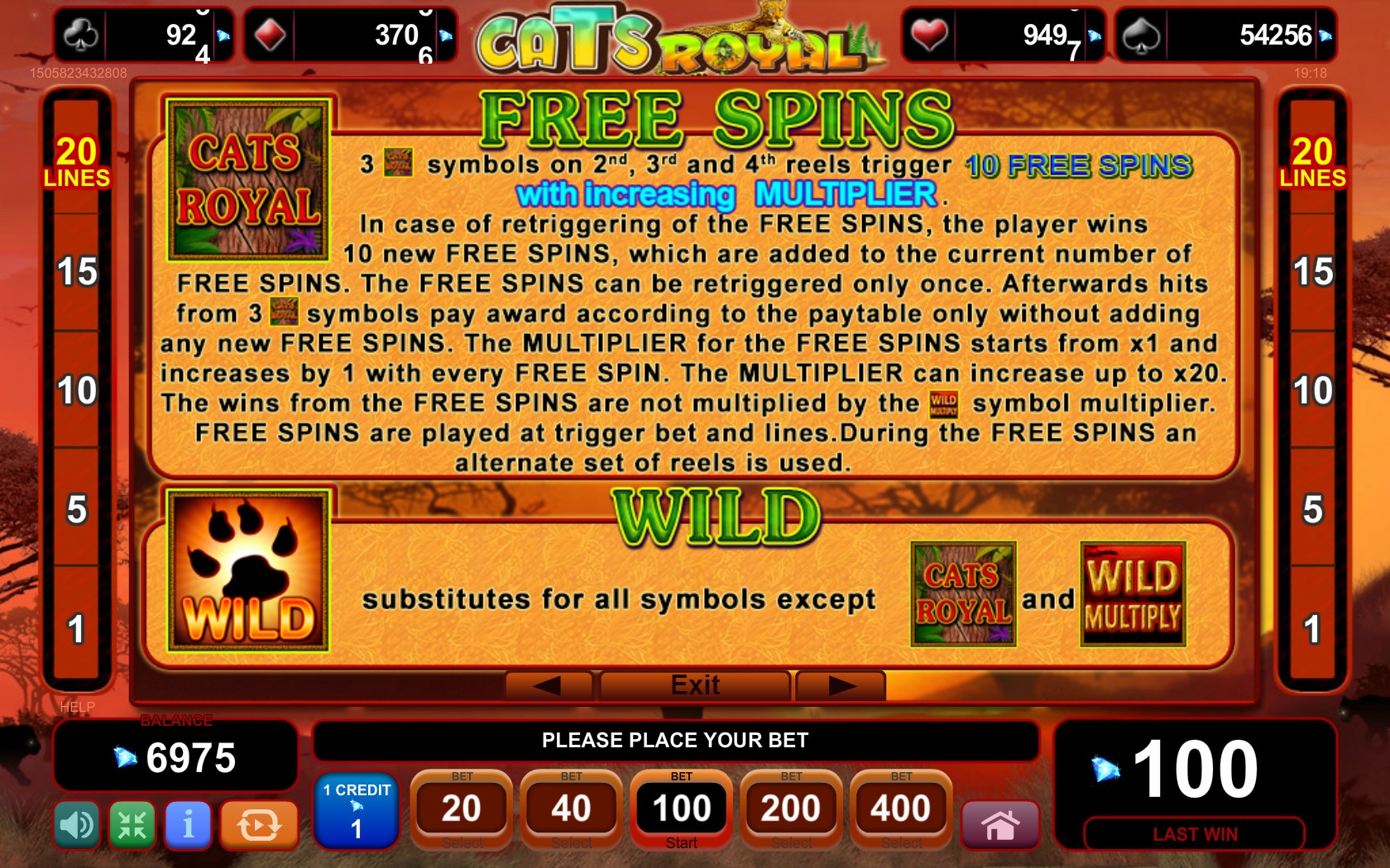 Данных о теоретическом возврате Cats Royal нет. Ниже читайте о дополнительных возможностях и исключениях из правил.