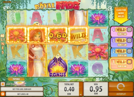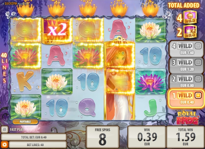 Royal Frog – это очень интересный видео-слот с превосходным набором функций, бесподобной графикой и классным интерфейсом. Еще одним достоинством модели можно считать очень широкий диапазон ставок (от сорока центов до четырехсот евро), которые делает ее интересной пользователям с любыми финансовыми возможностями.