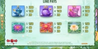 В таблице указаны не только множители выплат по комбинациям. Еще там вкратце рассматриваются правила, а также приводится схема расположения активных линий на барабанах.