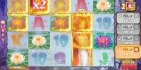 - Wild нужен для того, чтобы заменять другие картинки (только обычные). Если играть по базовой ставке, на экране будет появляться лишь один вид этого символа – Царевна-лягушка. Она охватывает четыре позиции по вертикали и может занимать целый барабан. Если увеличить ставку в два, три или четыре раза, добавятся еще один, два или три Wild соответственно. При этом при трех- и четырехкратной ставке эти «дикие» символы будут еще и удваивать выплаты по комбинациям, в образовании которых они участвуют.
