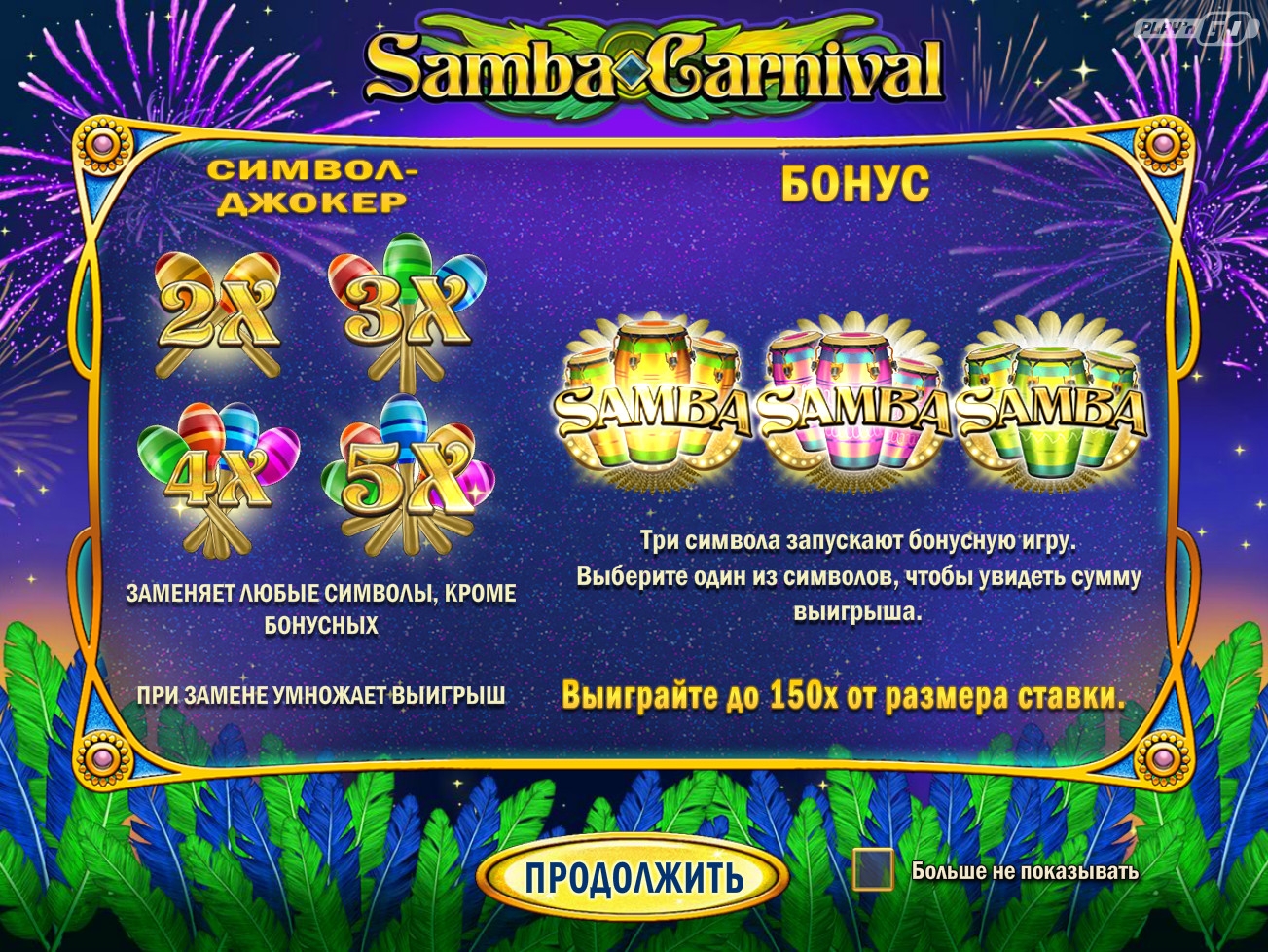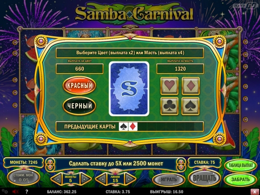 В Samba Carnival нет накопительного джекпота или его аналогов.