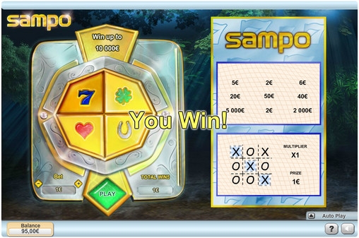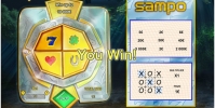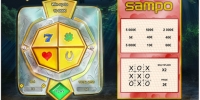 Цель игры в Sampo сводится к тому, чтобы найти карточку, в которой на одной линии по вертикали, по горизонтали или по диагонали найти три одинаковых суммы. Такой и будет выплата по данному билету.