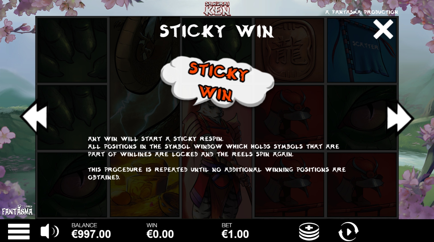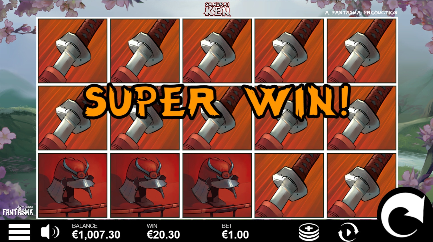 В слот-машине Samurai Ken отсутствуют прогрессивные джекпоты Fantasma Games или Leander.