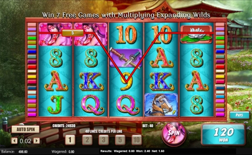 Принцесса-самурай неплохой видео лот,яркое и красочное графическое изображение!Хороший коэффициент выплат!Интерфейс не переведён на русский язык,но это не мешает понять и разобраться в игре!Автомат можно протестировать без регистрации!