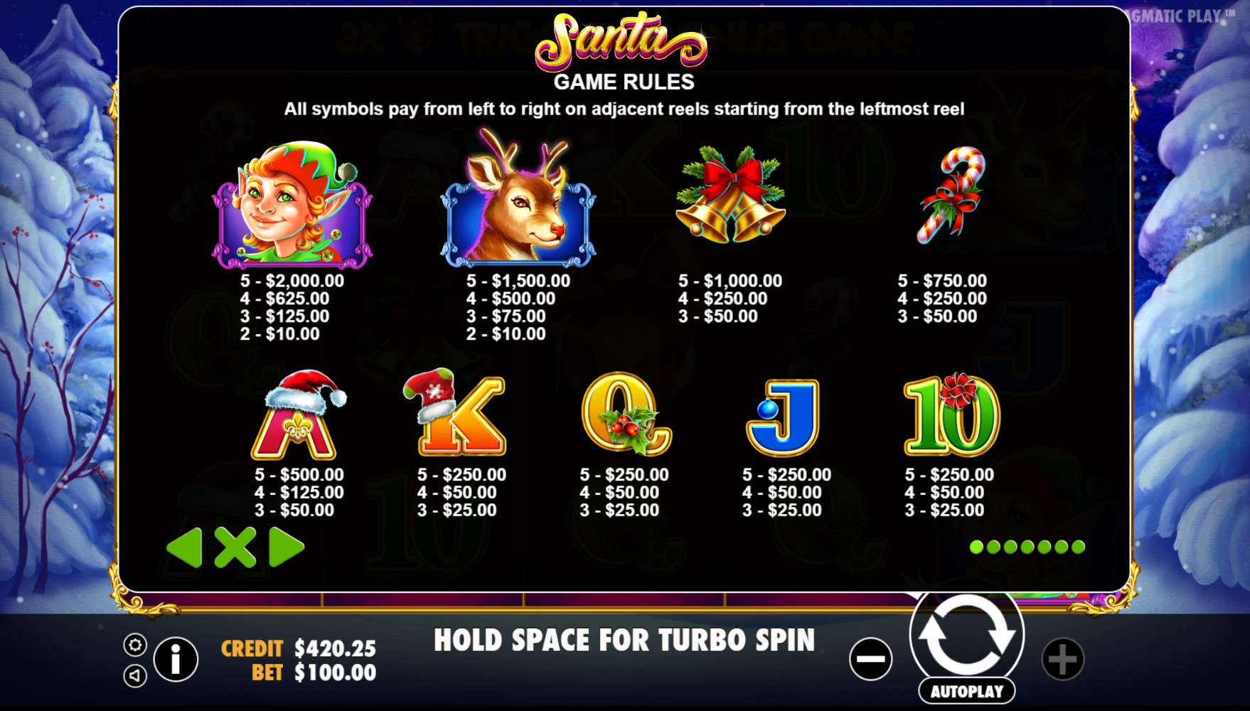 Играть на автомате «Санта» на деньги можно в онлайн-казино с софтом Pragmatic Play.