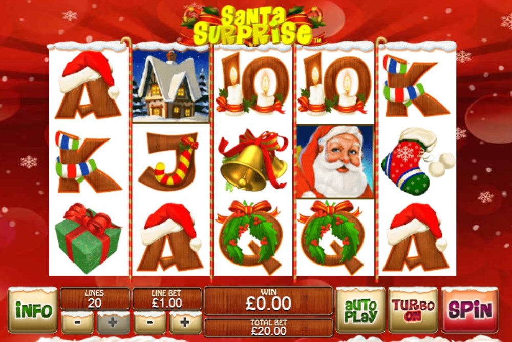 «Сюрприз Санты» - это пятибарабанный игровой автомат с двадцатью линиями, который полностью соответствует ожиданиям поклонников подобных азартных игр, воодушевленных приближением новогодних праздников. Минимальная ставка составляет всего один цент.