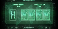По завершению раунда можно начать игру по шансам. Она выдержана в стиле, более привычном для любителей видео-покеров. На дополнительном экране возникает одна открытая и четыре закрытых карты. Нужно наугад перевернуть любую из четырех карт. Если она будет старше открытой, выплата удвоится. Интересно, что отказаться от продолжения и забрать деньги можно даже после того, как увидишь карту дилера.