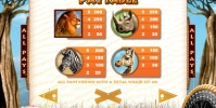 В роли базовых картинок, приносящих выплаты по описанным выше правилам, здесь используются изображения четырех животных (лев, носорог, жираф, зебра) и шести номиналов игральных карт (от девятки до туза), украшенных африканскими узорами.