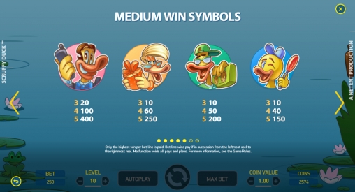 В таблице коэффициентов есть полная информация о представленных в Scruffy Duck символах.