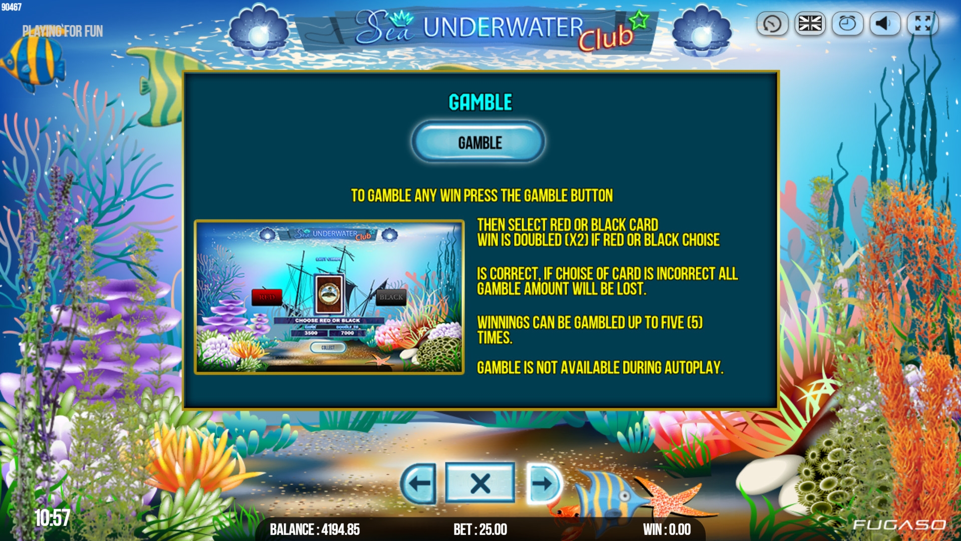 Начисленные деньги можно ставить на кон в игре по равным шансам. Угадайте цвет карты, чтобы сумма удвоилась. Если ошибетесь, останетесь без ставки. Разрешается играть до пяти раз подряд.
