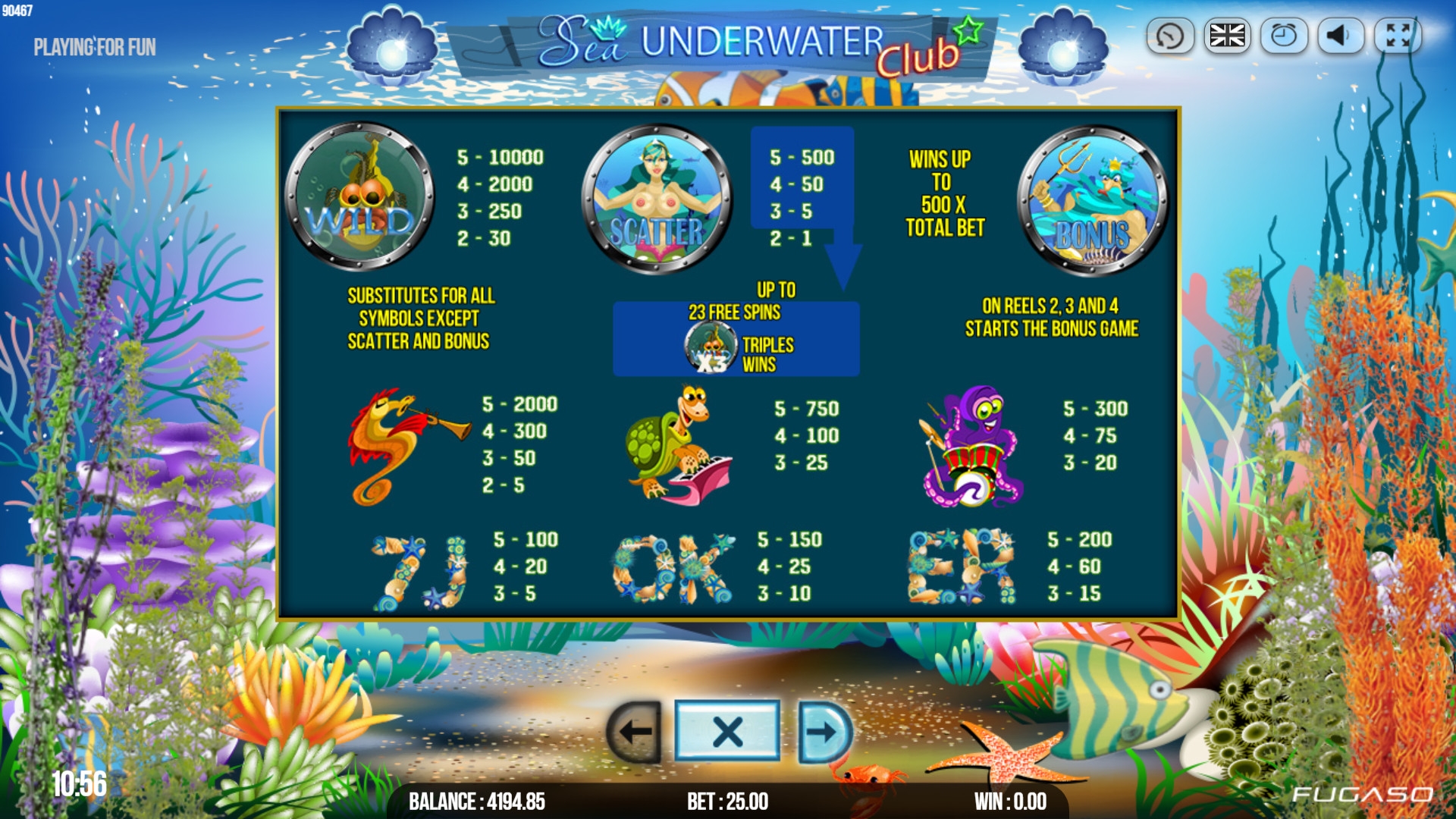 В Sea Underwater Club компания Fugaso прогрессивные джекпоты не разыгрывает.