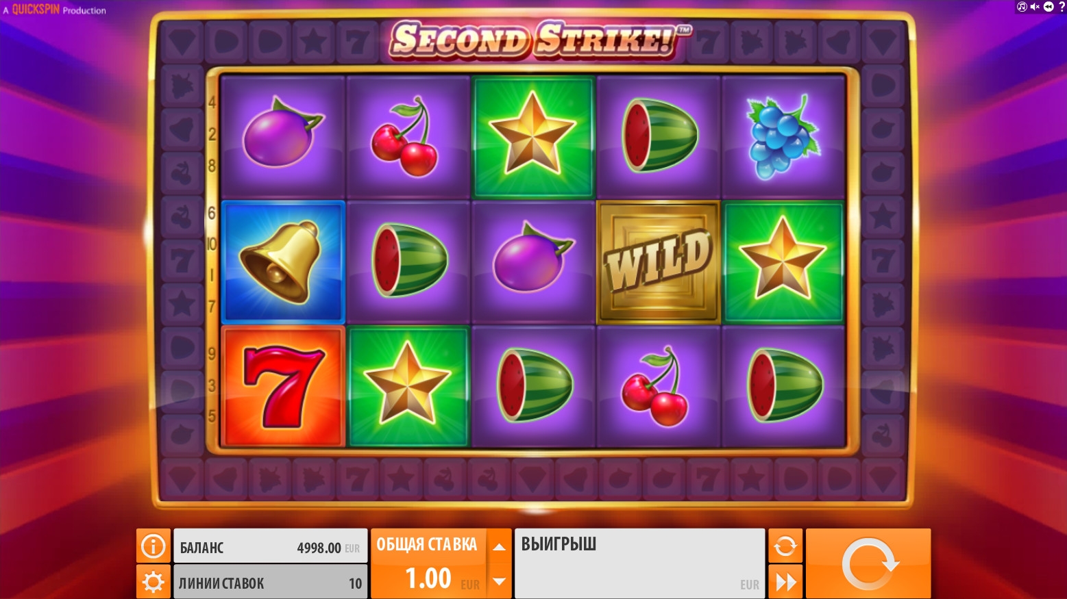 Представляем читателям энциклопедии азартных развлечений Casinoz новинку от компании Quickspin. Имеется в виду бесплатный видео-слот Second Strike с традиционными картинками на экране и оригинальными возможностями игрового процесса. Мы уверены, что он придется по душе всем ценителям нестандартных моделей.