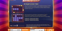 «Второй удар» - онлайновый игровой автомат с пятью барабанами и десятью постоянно активными линиями, на которые принимаются ставки одинакового размера, и на которых формируются оплачиваемые комбинации. Всего на экране пятнадцать картинок. Вокруг них по всему периметру располагается цепочка из маленьких затемненных символов, которые задействуются в функции Second Strike (о ней чуть ниже).