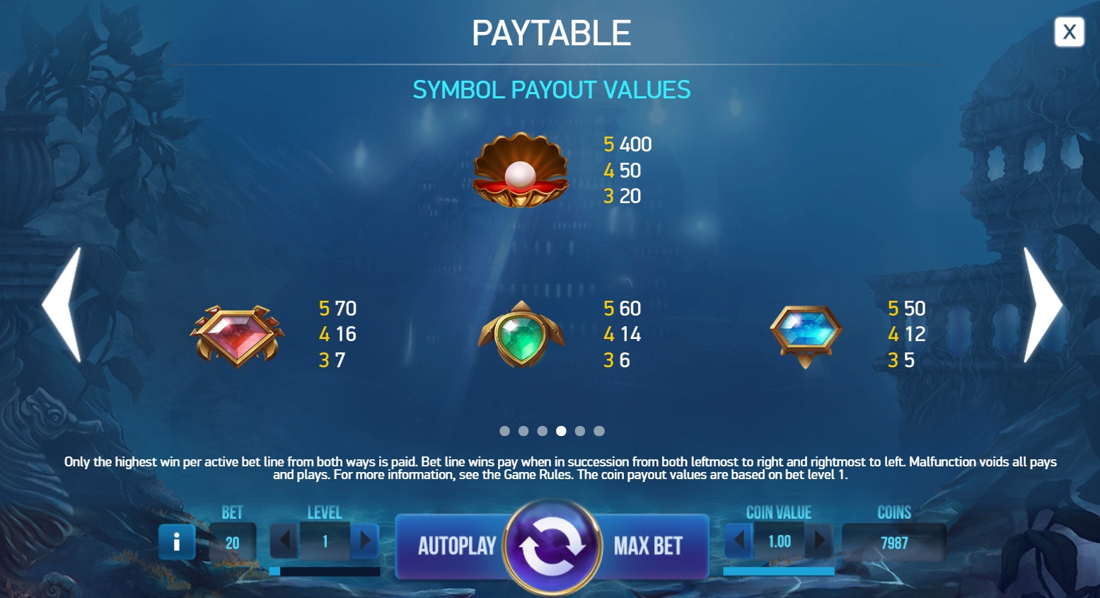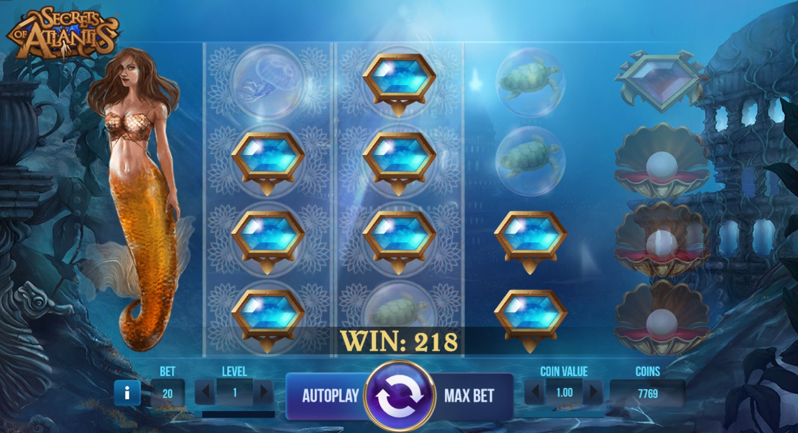 Игры на удвоение в Secrets of Atlantis нет. Ниже читайте о символах-исключениях и бонусных опциях.