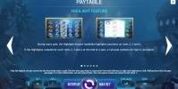 - Highlight Feature – В каждом спине на втором, третьем и четвертом барабанах подсвечены цепочки картинок, выбранные случайным образом. Если так заполняются все двенадцать позиций в трех колонках, на их месте появляется «колоссальный» символ. Он выбирается наугад и участвует в формировании комбинаций подобно цепочке из трех обычных элементов. Далее запускается бесплатный повторный спин с данным символом на экране.