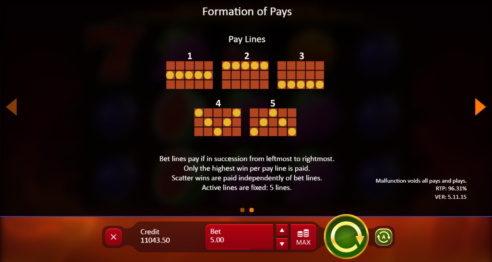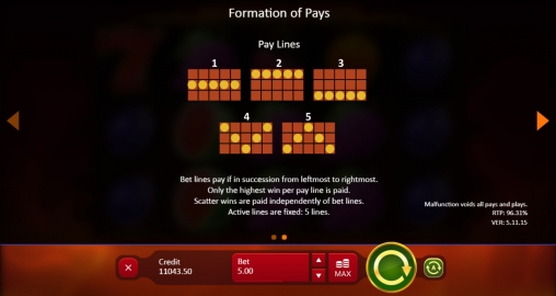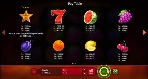 Выплаты рассчитываются по множителям от х3 до х5000 и ставке по одной линии. Если выигрышей несколько, они суммируются.