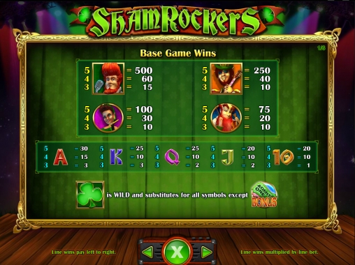 Также в Shamrockers есть два особых символа, которыми являются Wild (лист клевера) и Bonus (билет на концерт). Далее о возможностях этих предметов: