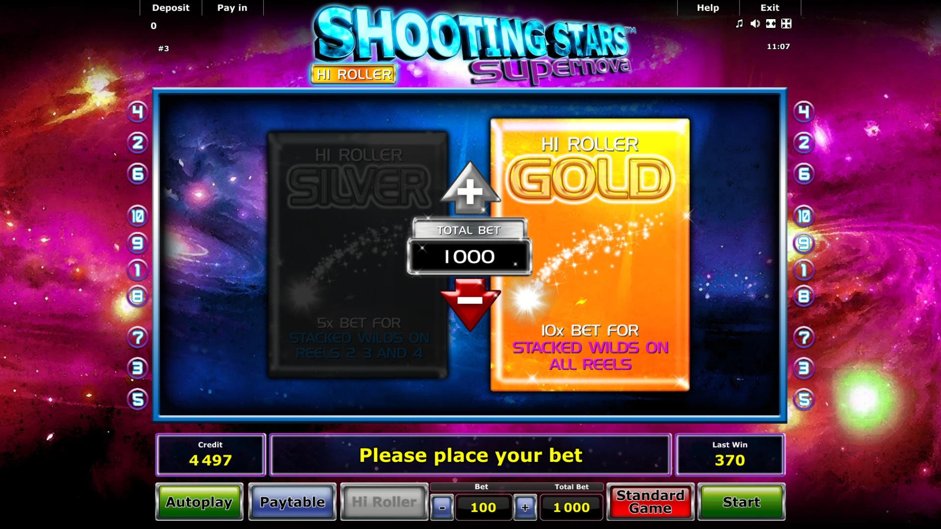 Ставка принимается на раунд. В StarGames она бывает от пятидесяти кредитов до одной тысячи. Допустимые номиналы чипов уточняйте в казино. Вы можете задействовать два режима хайроллера: